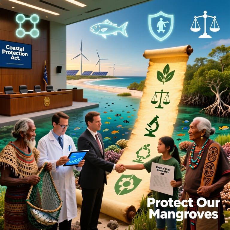 The primary goal is to ensure the creation and effective implementation of environmentally sound and sustainable policies that safeguard vital coastal habitats like mangroves, coral reefs, and seagrass meadows.This process typically includes: